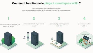 L’application permet également de bénéficier d’un accompagnement concernant les gestes de prévention, le placement du piège et l’identification des différents types de moustique.